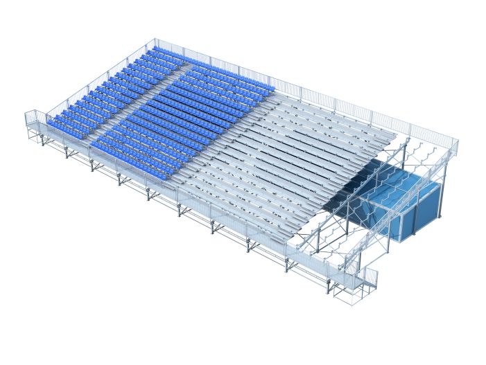 產(chǎn)品特點:主要結(jié)構(gòu)(斜梁、立柱)采用承載能力強勁的H型鋼,可滿足高排數(shù)、挑高、大開間設(shè)計需求,其底部空間可多元化利用,增設(shè)儲物間、休息室、多功能房等,是室外大型看臺系統(tǒng)首選。